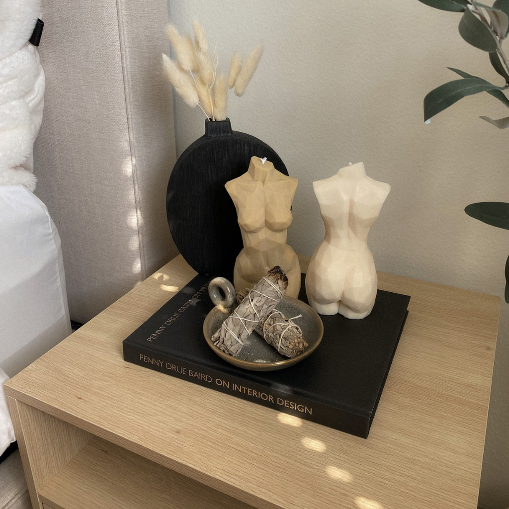 Chérie has a striking torso with delicate angles from top to bottom. Handmade in house in San Francisco, CA. The detail of each angle on her body comes to life in two exquisite colors, café and crème. Chérie is the perfect statement piece, bring an experience to any corner of your home! Dimensions: Height - 8 in / 20 cm Width - 3.14 in / 8 cm