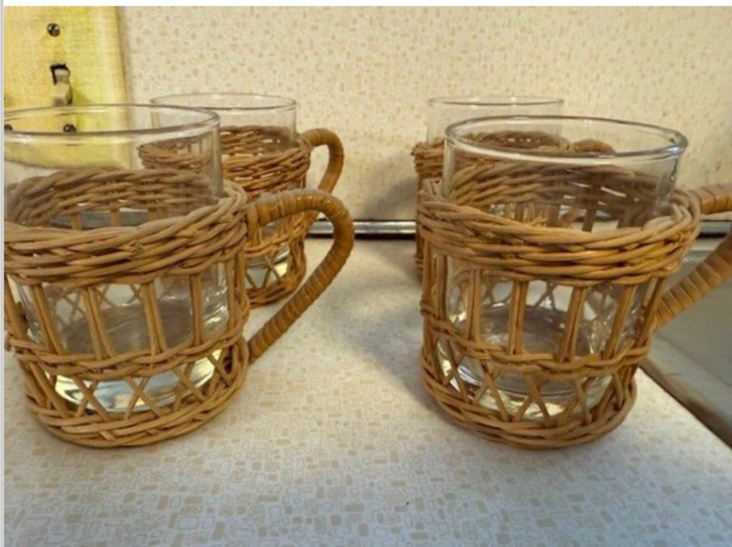 1970's Libbey Tea Cups In Rattan Holders- Set Of 4 is backordered and will ship as soon as it is back in stock.
