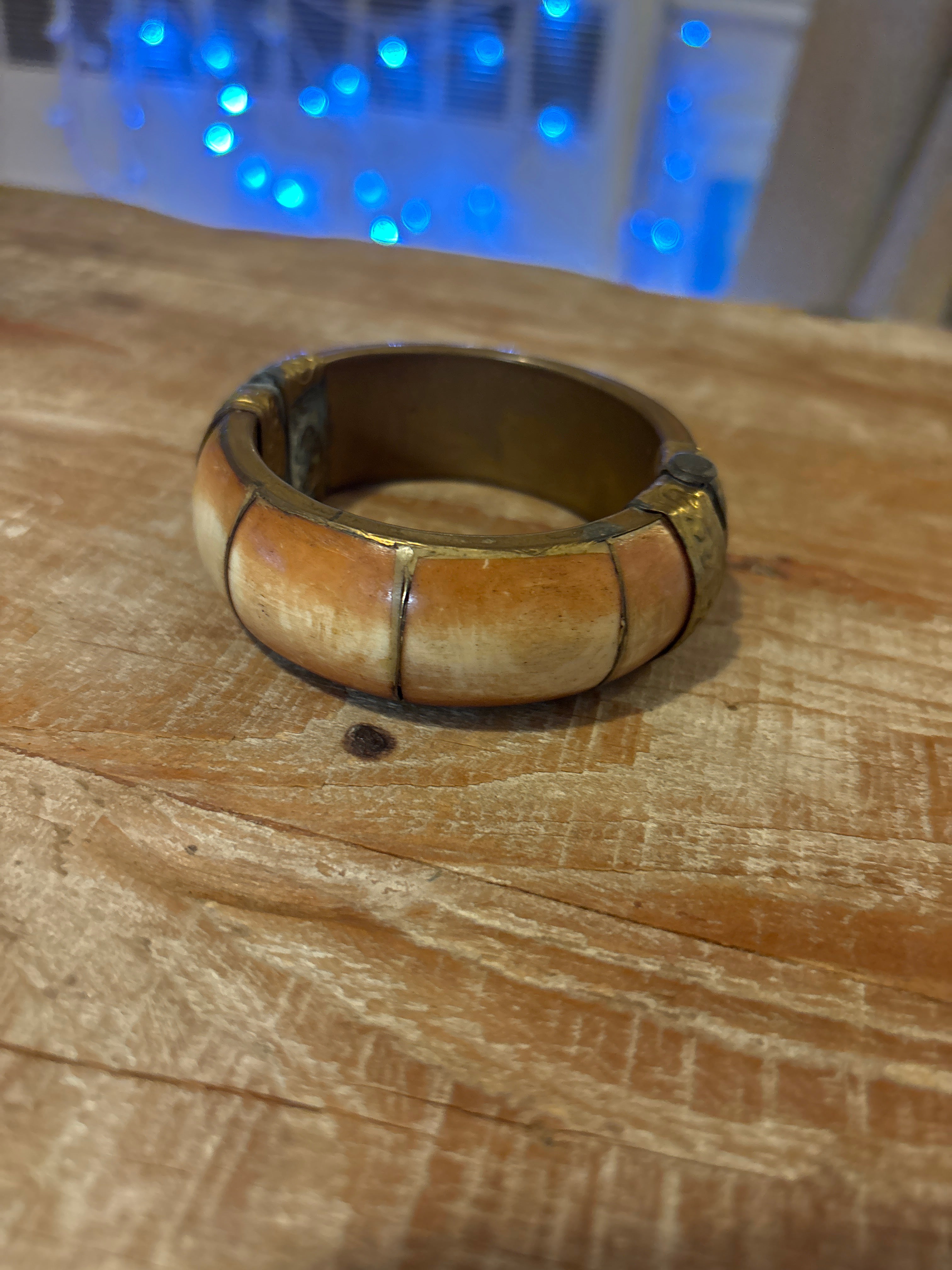 Vintage Antique Brass & Cow Bone Inlay Hinge Bracelet is backordered and will ship as soon as it is back in stock.