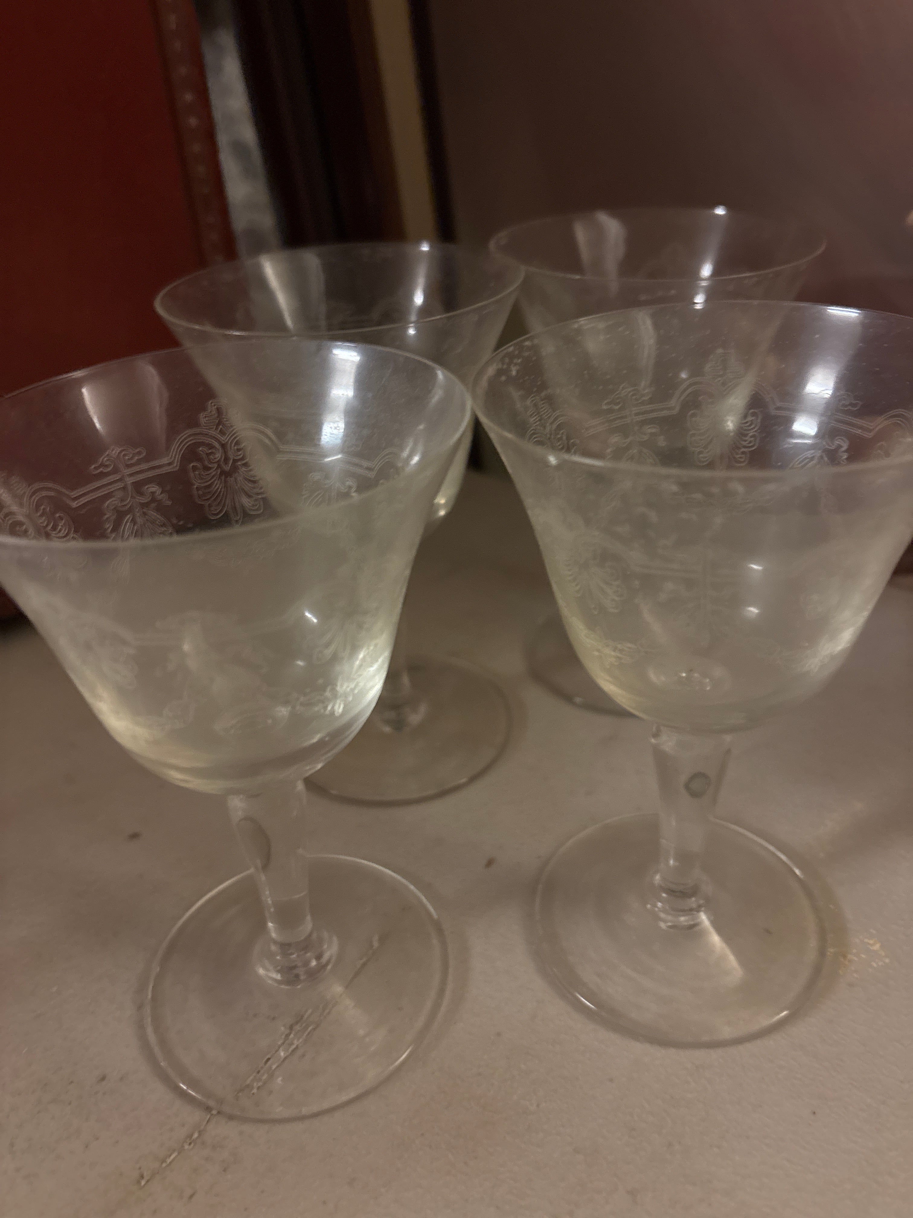 Needle Etched Wine Glasses - set of 4