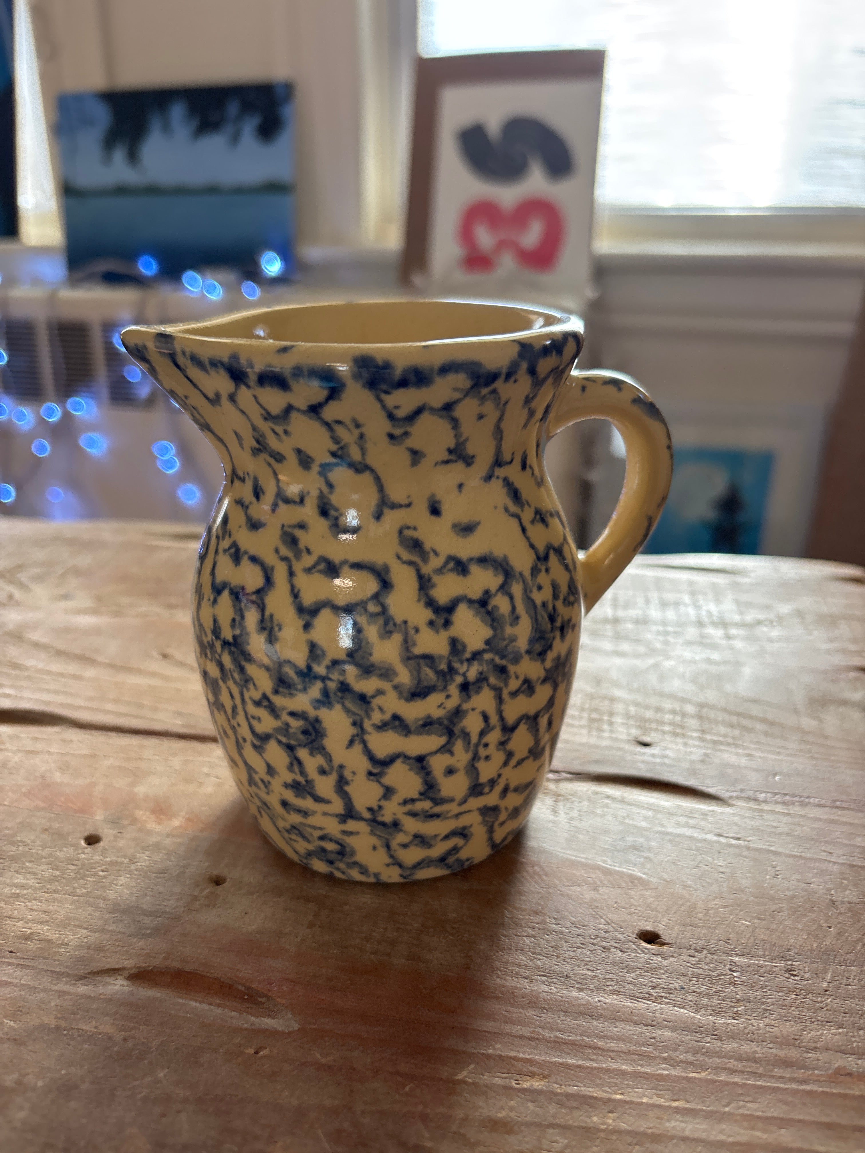 Vintage Stoneware Ransbottom Blue Spongeware Pitcher, from Roseville Ohio is backordered and will ship as soon as it is back in stock.