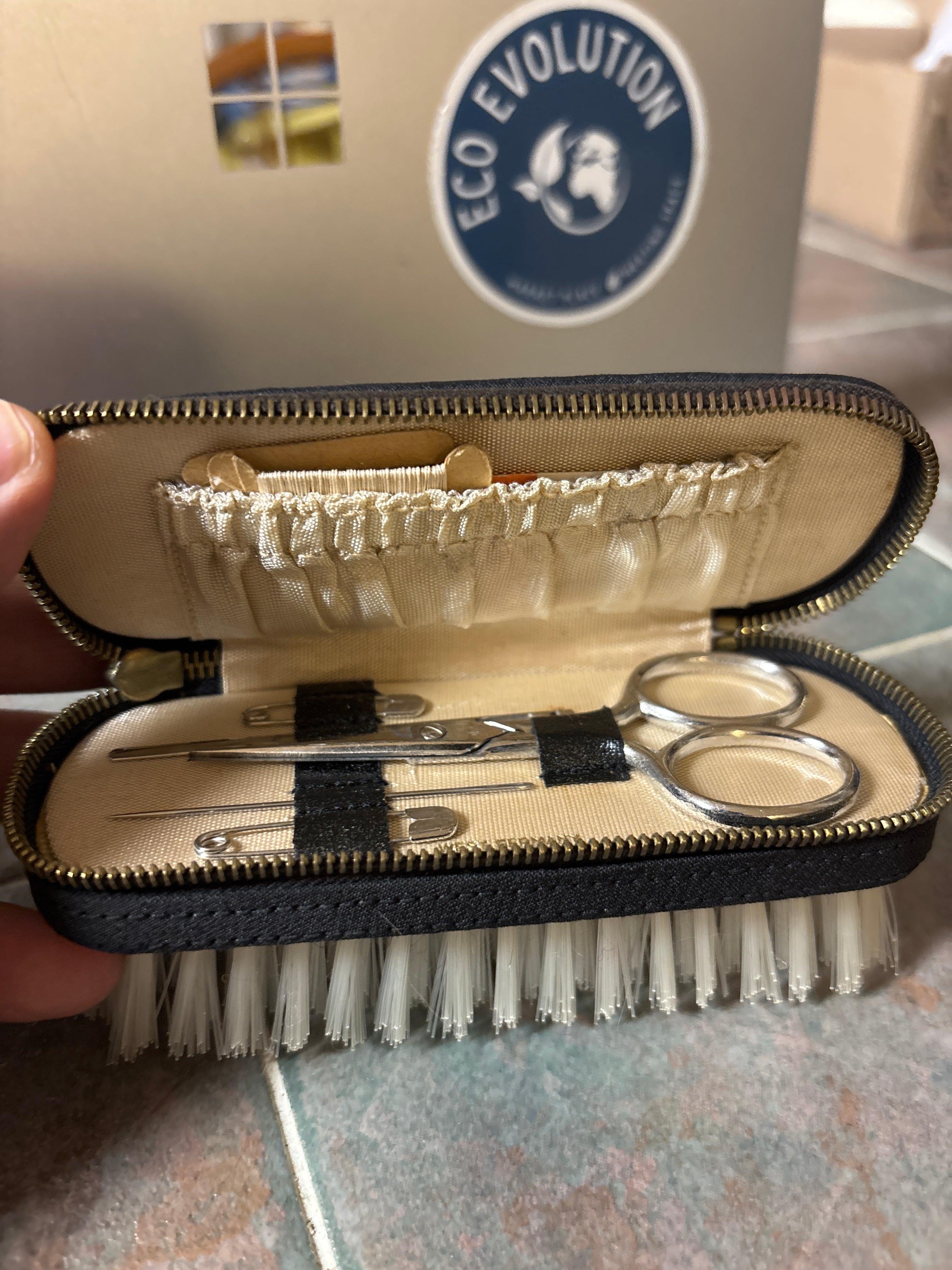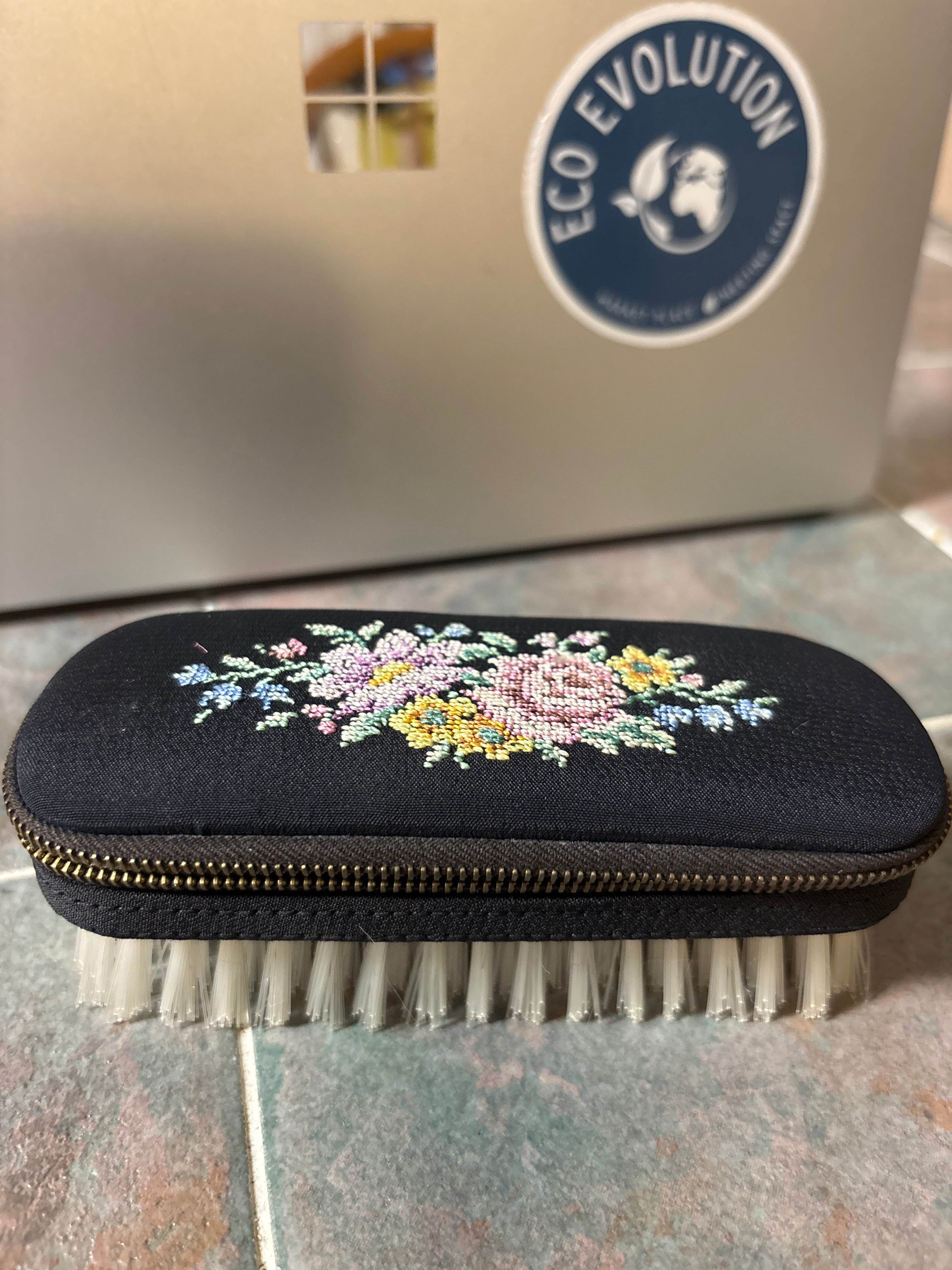 Vintage Zippered EMBROIDERED Travel lint Brush SEWING MANICURE SET West Germany