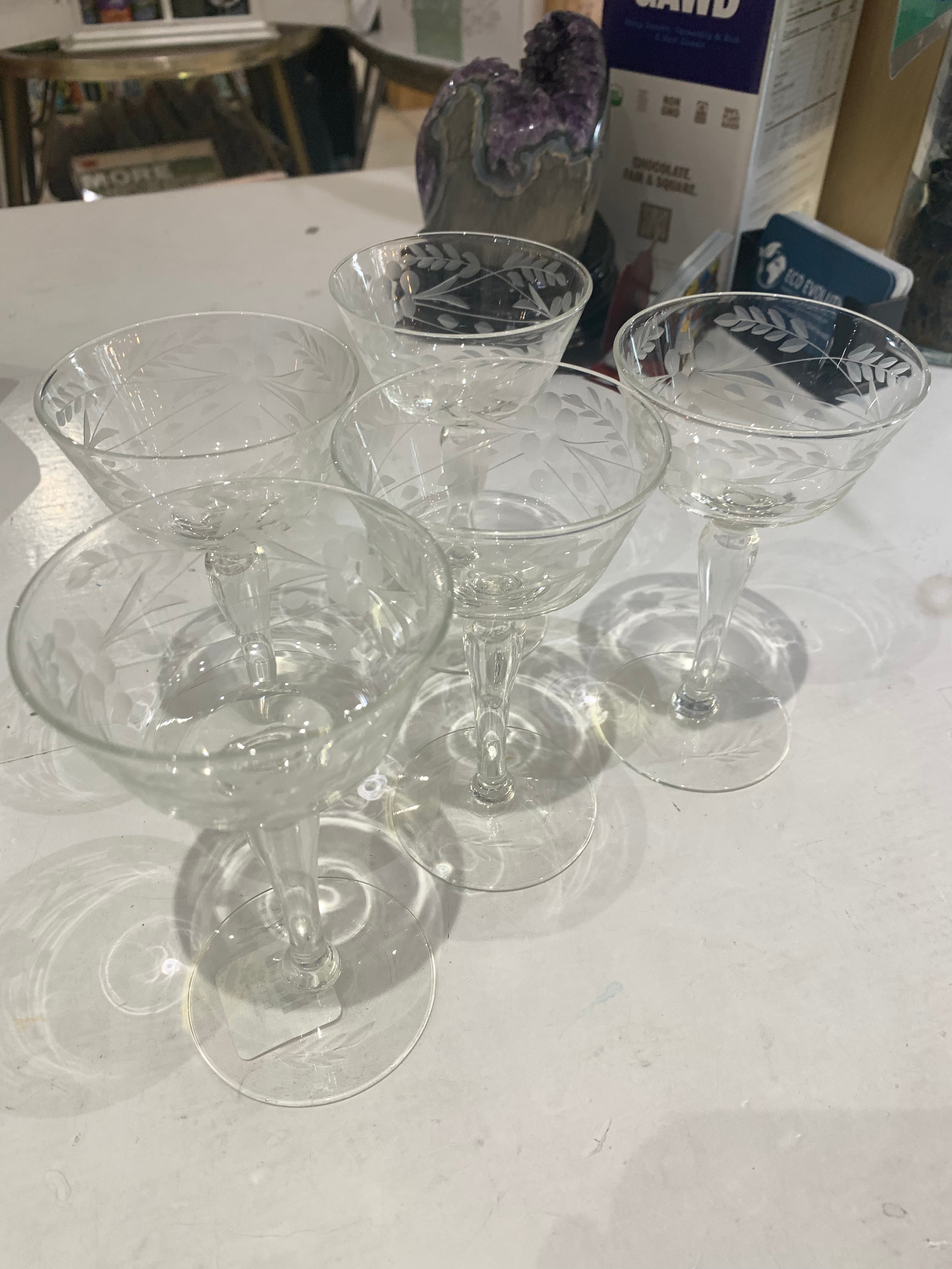 Etched Cordial Glasses - Set of 5 is backordered and will ship as soon as it is back in stock.