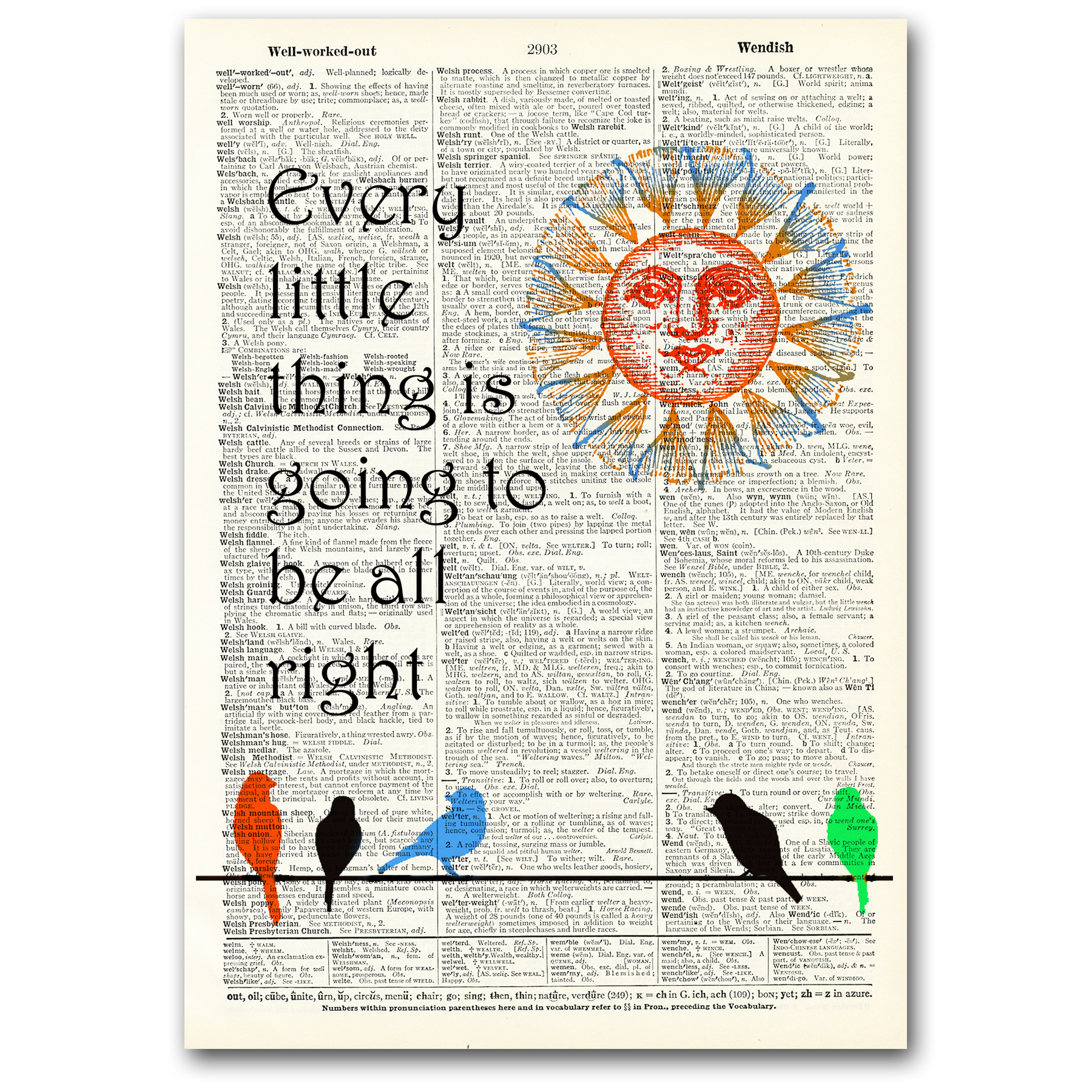 Prints come wrapped in clear cellophane sleeves with a protective cardboard insert and Certificate of Authenticity included. Dictionary art prints are handmade from original, 100-year-old vintage Webster's Dictionary pages. Each page is delicately removed from the book by hand and printed with a whimsical saying or quote, creating a unique gift or decorative accessory for your home. THESE ARE NOT REPRODUCTIONS. Fun facts about Vintage Dictionary Art: - No two prints are alike! Designs are randomly printed on each page, making a one-of-a-kind art piece every time. - Something new made from something old. Feel the texture and patina of every dictionary page! - Versatile gift - can be framed for the perfect home or office accent.